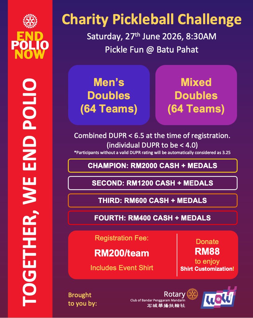 The Rotary Club of Bandar Penggaram Mandarin is a vibrant and dedicated group of community leaders and professionals who are passionate about creating positive change. As part of Rotary International, our club is committed to the motto of "Service Above Self," focusing our efforts on local and global projects that address critical issues such as health, education, and poverty.